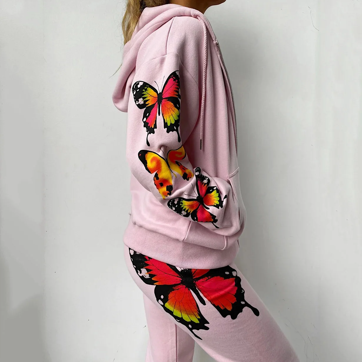 Women Suit Sport Set Clothing Butterfly Tracksuit Pants+Camisole Crop Top+Hooded Jacket 3 Pcs Suit Loose Hoodies Sweatshirt