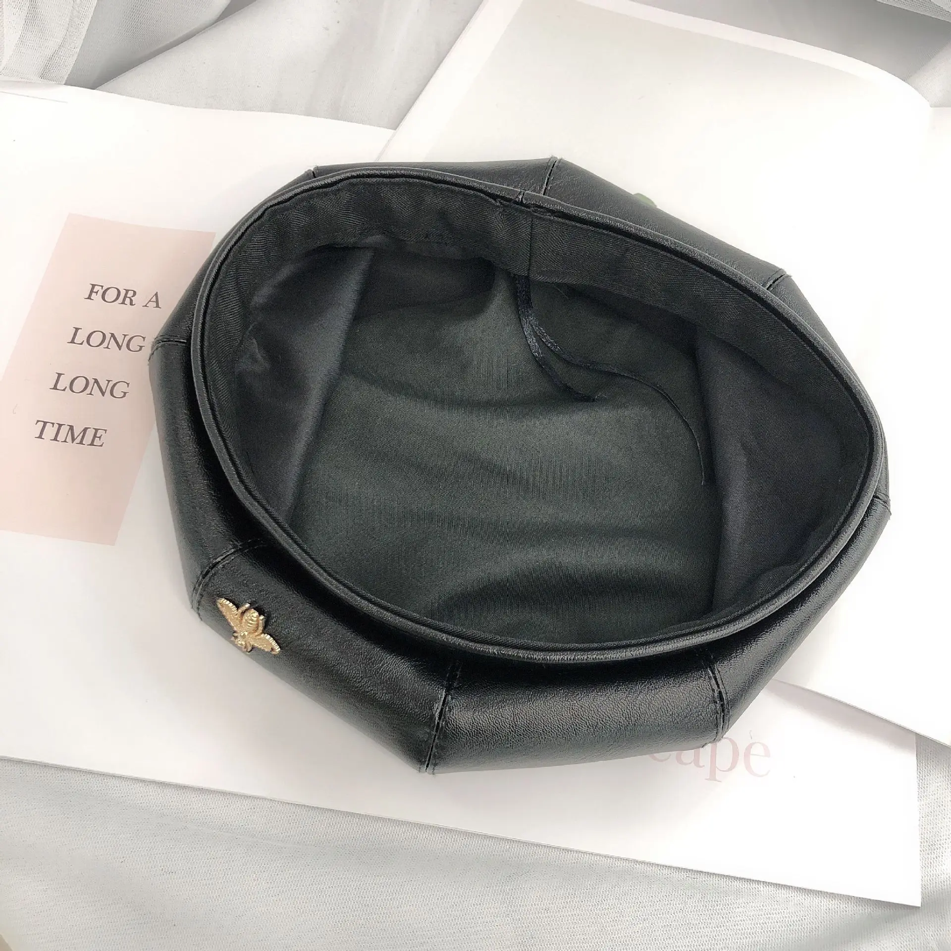 Женская зимняя кожаная шапка, кожаная восьмиугольная шляпа, модные вечерние кепки в британском стиле ретро, берет