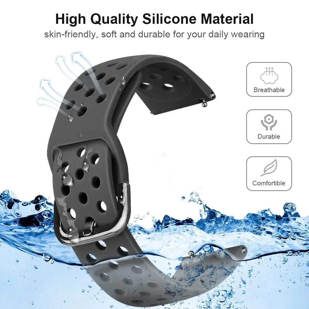 1. Тип товара: сменный ремешок для часов 2. Ширина ремешка: 20 мм 3. Материал ремешка: силикон 4. Цвет: однотонный 5. Подходит для запястья: 5,5-8,7 дюйма 6. С быстроразъемным штифтом, легко и напрямую устанавливается или снимается 7. Конструкция с перфорированными отверстиями, дышащая ткань, сохраняющая сухость вашего запястья 8 посылка: 1 ремешок для часов 20 мм
