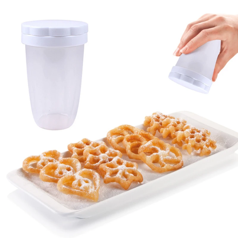 Vibrating screen with small holes is ideal for sprinkling cocoa or chocolate powder on cappuccino.