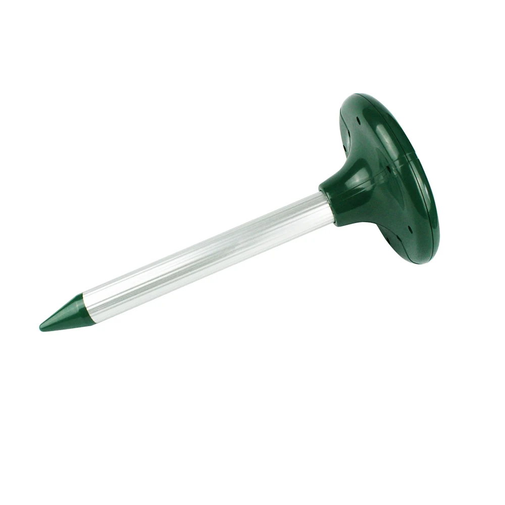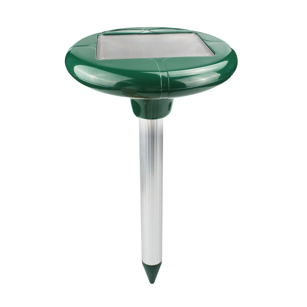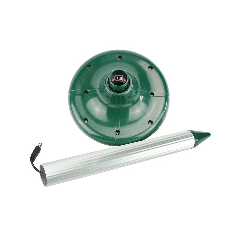 Устройство, работающее от солнечной энергии, использует звуковые волны для отражения вредных грызунов (змей, волн и т. д.). Излучая звуковые волны, Солнечный Отпугиватель змей очень эффективно удаляет подземных грызунов. Звуковые волны будут раздражать их, имитировать опасность, И отталкивает их от облученной области. Передавая звуковые волны каждые 40 секунд или около того, Солнечный Отпугиватель змей эффективен в пределах площади 650 квадратных метров. Солнечный отпугиватель Кротов излучает во всех направлениях. Избегайте каких-либо препятствий и позвольте звуковым волнам свободно излучаться. Для наилучшего использования продукта мы настоятельно рекомендуем установить 2 устройства на каждые 30 метров для районов Земли, часто посещаемых грызунами. Солнечный Отпугиватель змей питания поставляется солнечной батареей, перезаряжаемый аккумулятор, собирающий энергию для работы в ночное время. Когда аккумулятор полностью заряжен, он может поставить достаточно энергии для темных часов, тем самым обеспечивая непрерывную работу часов.
