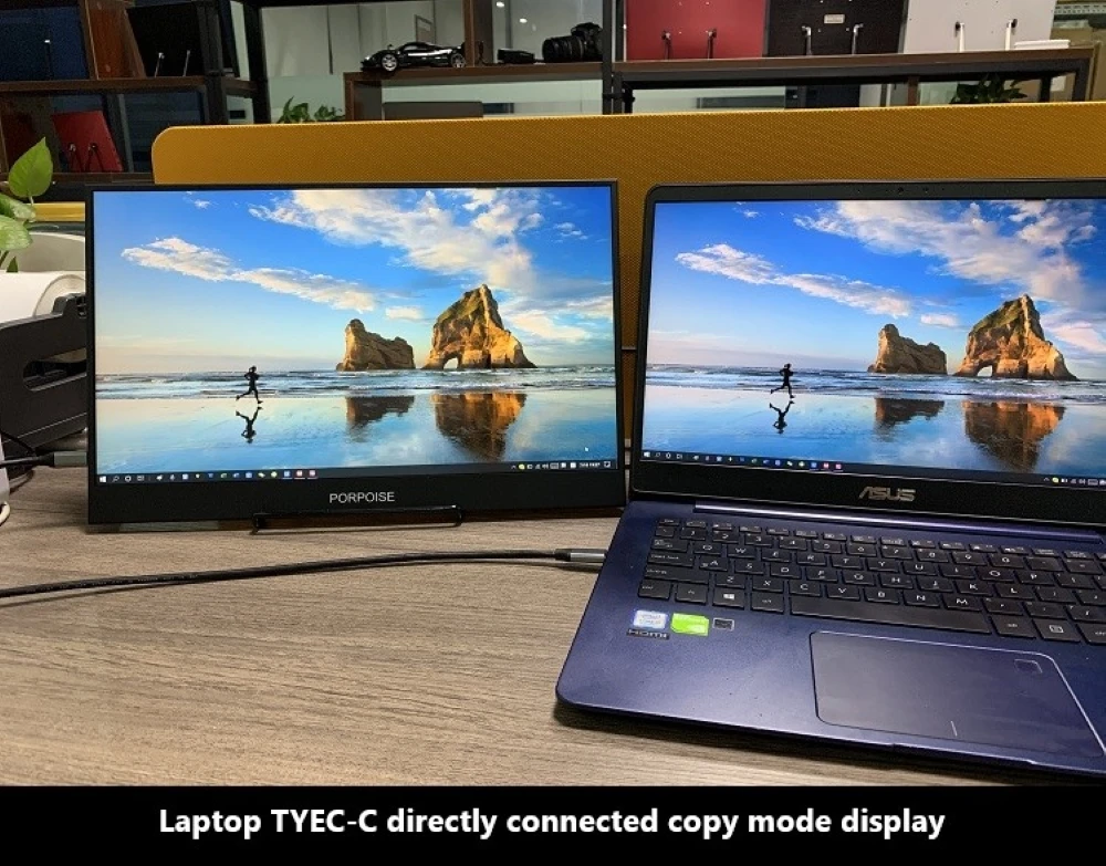 Благодаря своей сверхтонкой:Толщина портативного компьютерного монитора: 11 мм, Вес: 750 г. Когда вы находитесь в деловой поездке или путешествии, идеально подходит как дополнительный экран для вашей работы. Портативный монитор USB C поставляется