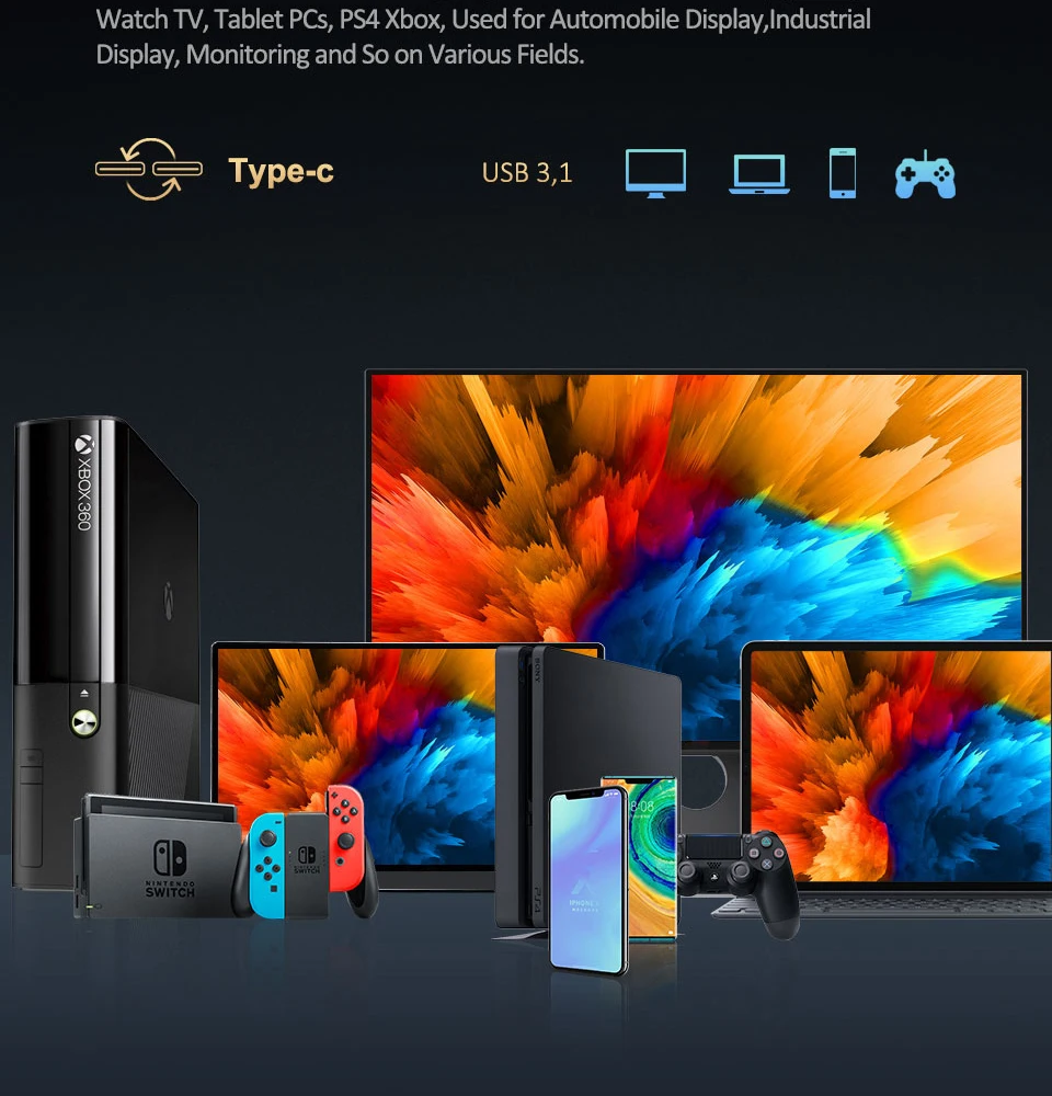 Широко совместимый, подключи и работай: 2K портативный монитор с 1 полнофункциональным USB-C портом и 2Mini HDMI портом, который легко подключается к ноутбуку, ПК, mac, смартфонам, XBOX, PS3 /PS4 /PS5, переключатели и т. д. (должны поддерживать USB3.1 или thunderbolt3, или использовать IOS/Android в HDMI адаптер).