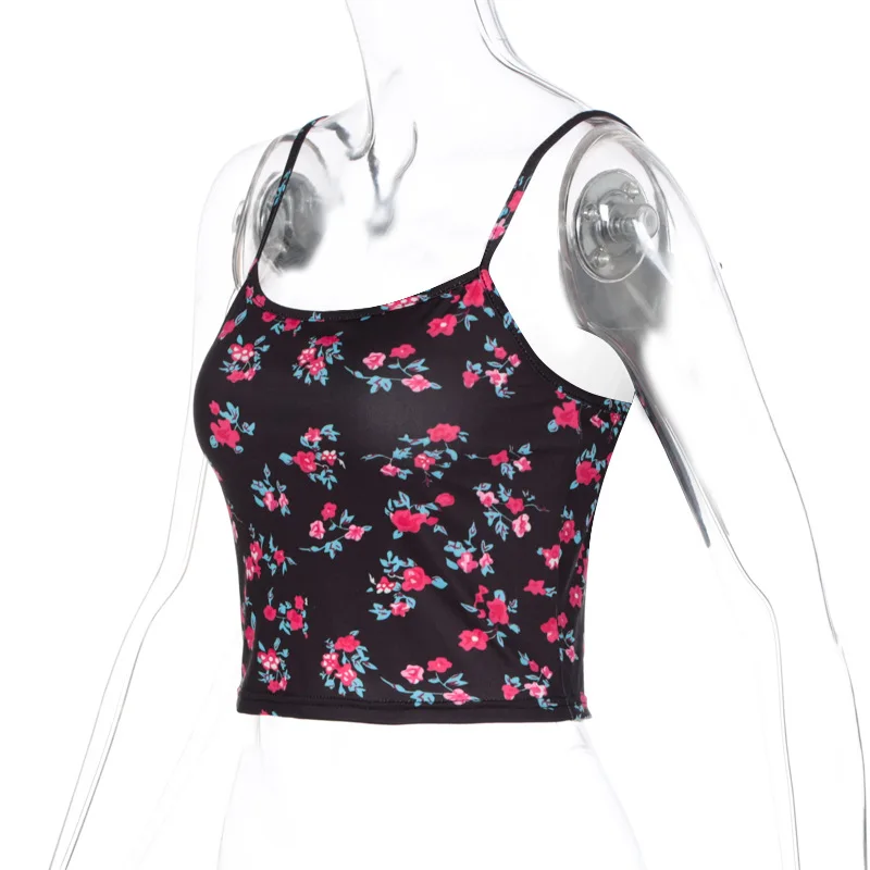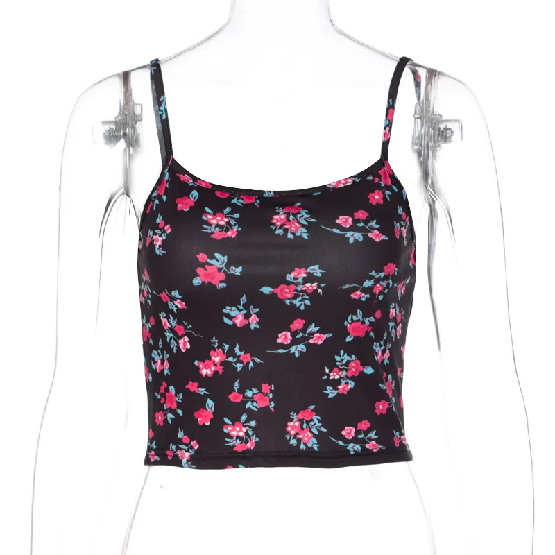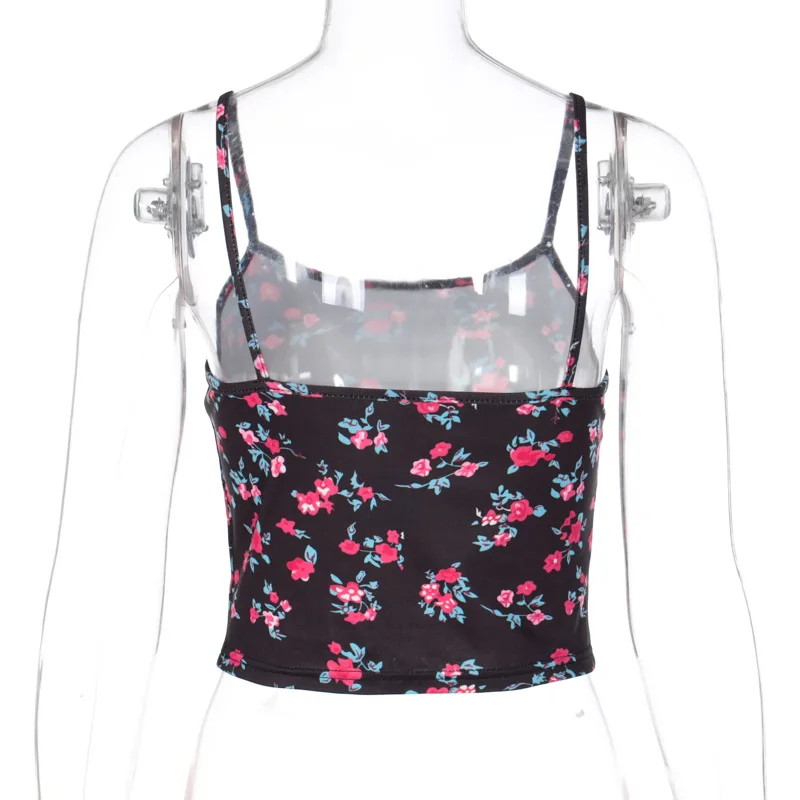 Floral Print Women Crop Top Strap Camis Backless Bodycon Sexy Streetwear 2020 Summer Girls Clothes Party Clubwear Cute Tops