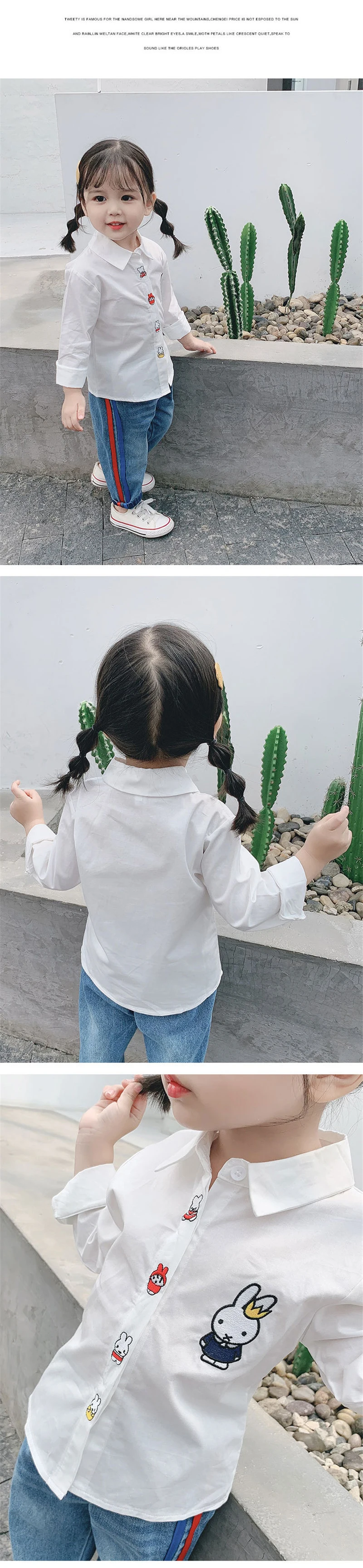 Белая блузка рубашки для девочек с принтом кролика, топы для девочек, От 3 до 8 лет школьная форма, блузка для девочек-подростков одежда tiktok