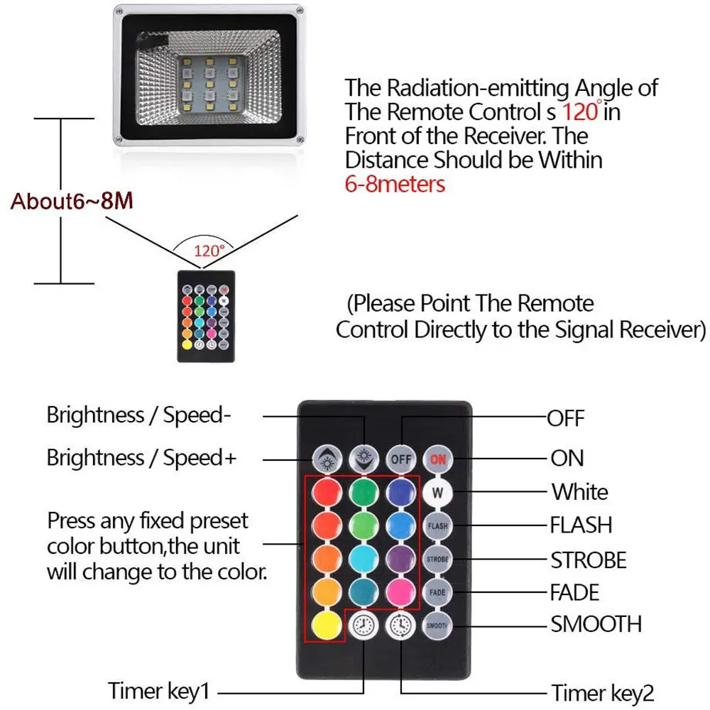 Водонепроницаемость: с классом IP65, он очень подходит как для внутреннего, так и для наружного использования, включая горнодобывающие операции, контуры зданий, стадионы, перелеты, памятники, Парки, цветники и т. Д. Синхронизации и функция памяти: Установите спортивную потока СИД светильник, чтобы включить или выключить в определенное время. Светильник включается и выключается с помощью пульта дистанционного управления. Светильник ing color остается прежним после включения. Просто нажмите кнопку, чтобы насладиться различными цветами/режимами освещения, которые изменяют нашу жизнь и делают жизнь проще и счастливее.