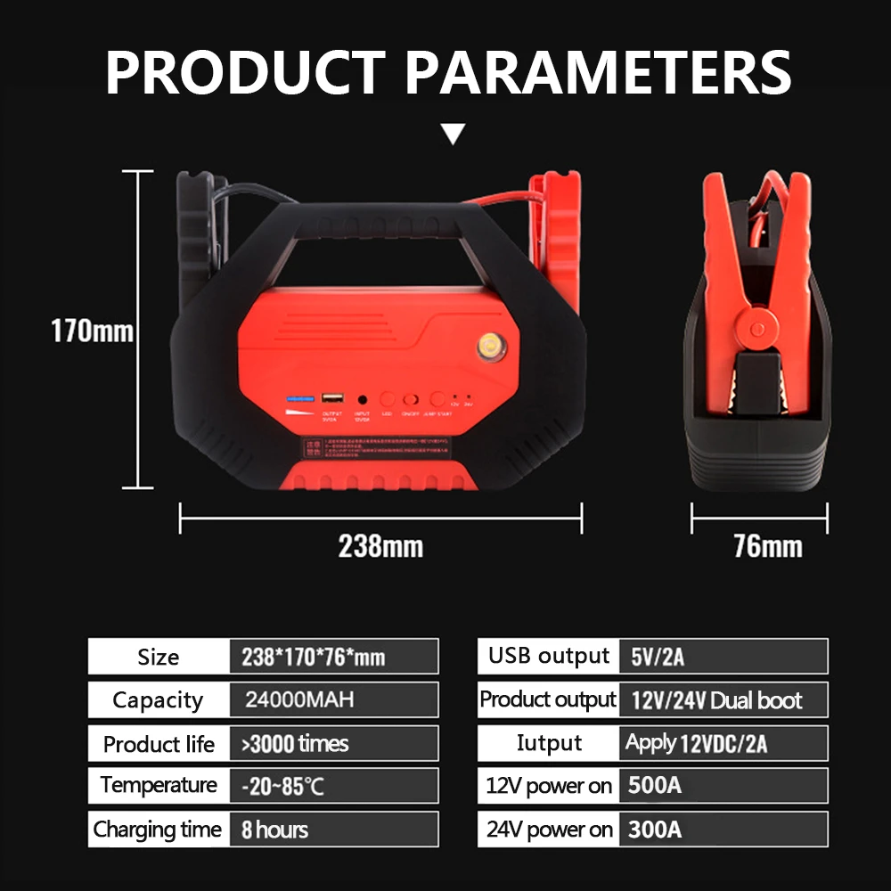 ◆Выход: USB 5V/.2A 12V/24V стартер скачка автомобиля