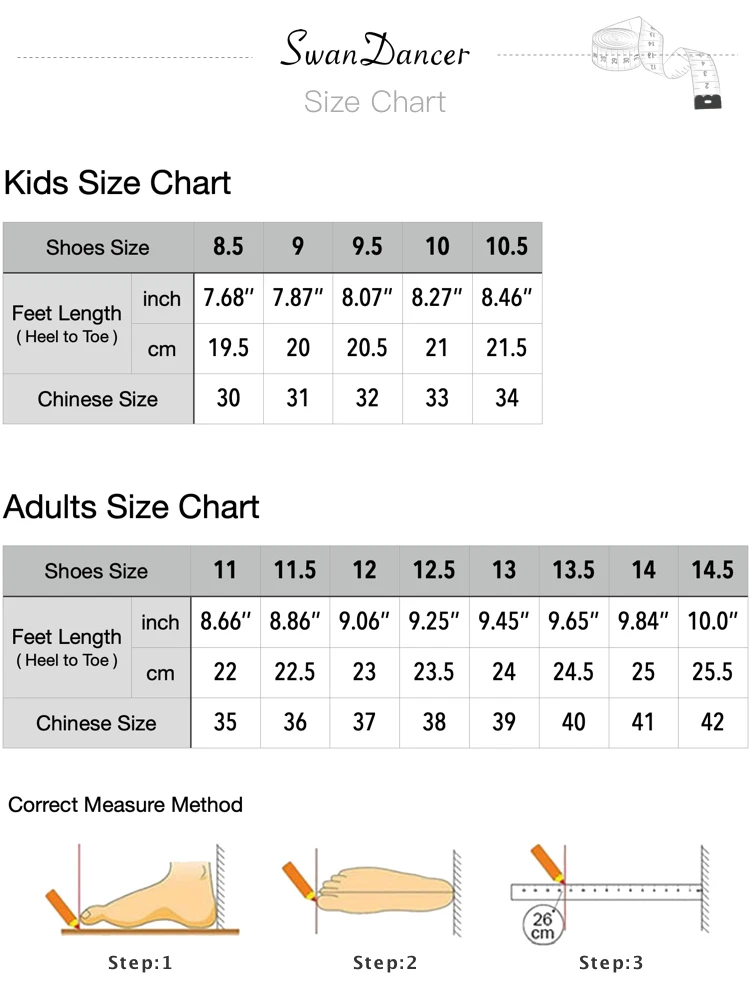 1. В разных странах есть разные стандартные размеры, пожалуйста, выберите размер в соответствии с длиной Вашей стопы, и, пожалуйста, сначала свяжитесь с нами, если вы не можете решить. 2. Если у вас широкая стопа немного полнее обычного, мы, как правило, рекомендуем выбирать модель на 0,5-1,0 я выбираю на один размер больше. 3. Замеры сделаны вручную, поэтому возможны около 0,3 см (0,12 дюймов) различия в связи с тем, что измерения выполнены вручную. 4. Как правило, мы отправляем вам китайский размер. (Не европейский размер)