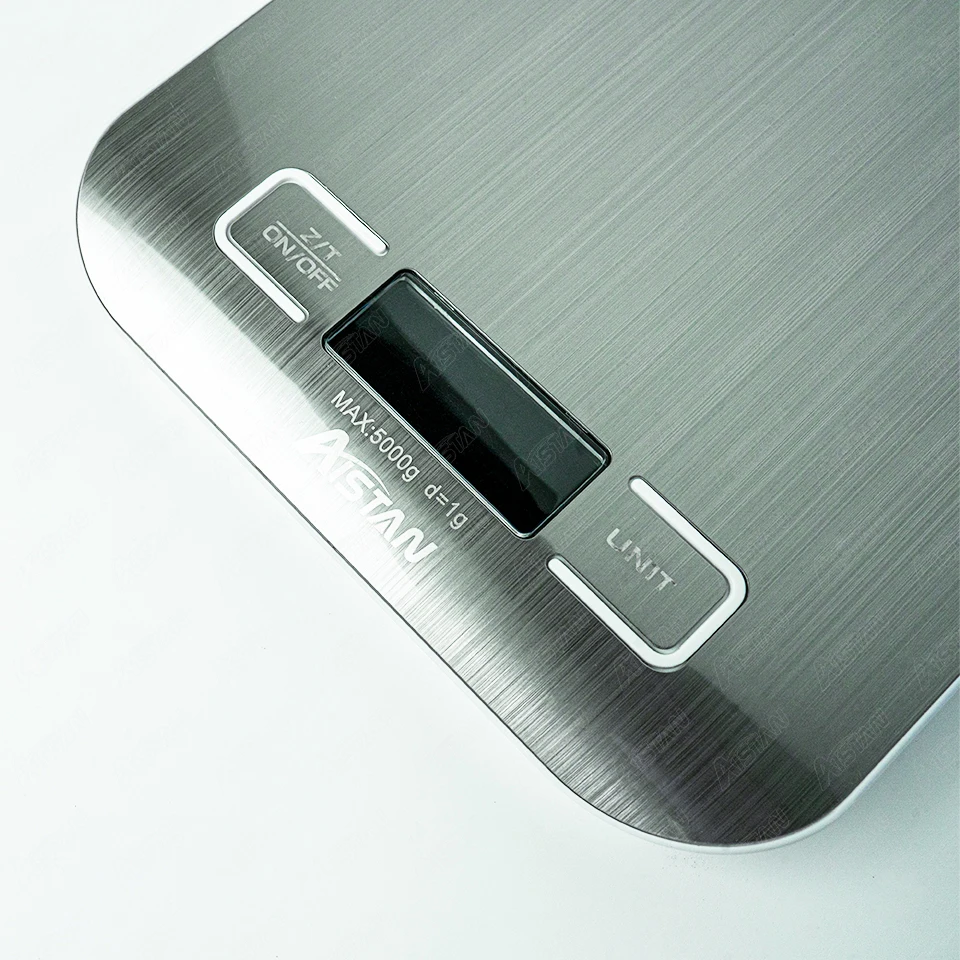 Stainless-steel digital scale is designed with food-grade 304 stainless-steel platform for easy cleaning and maintenance