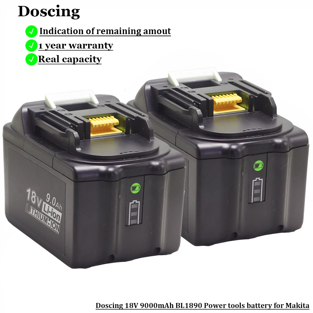 1or 2 шт. Doscing 18V 9.0Ah литий заменитель аккумуляторные инструменты батарея для Makita