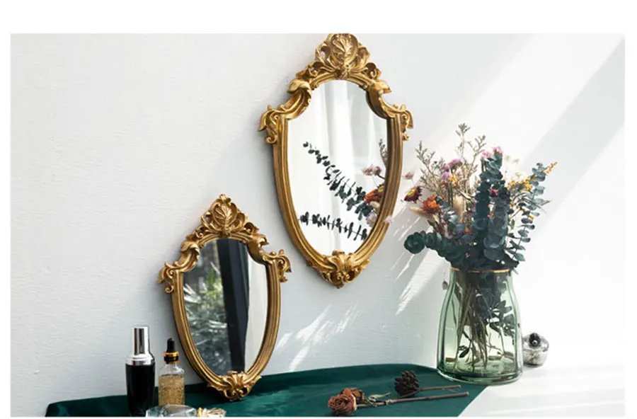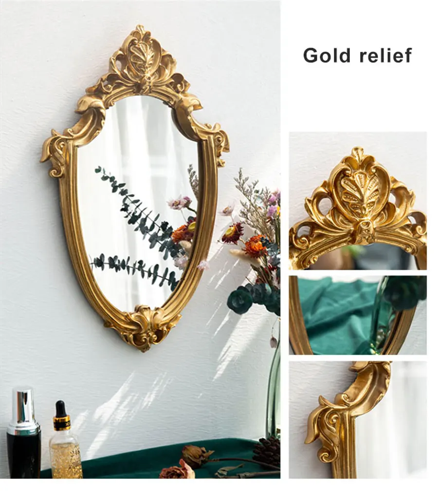 Европейский роскошный Декор на стену зеркало золотой рельеф смолы зеркала украшение дворца туалетный столик в спальню зеркала для макияжа