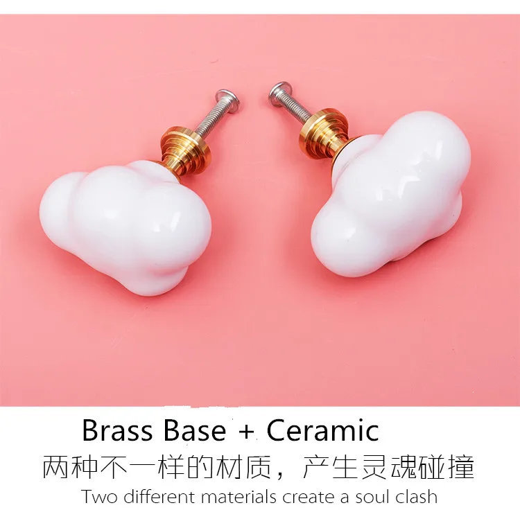 Высокое качество Мультфильм цвет Облака Луна керамика ручка для детской мебели Латунь ящик обуви шкаф для телевизора дверная ручка для шкафа белый розовый