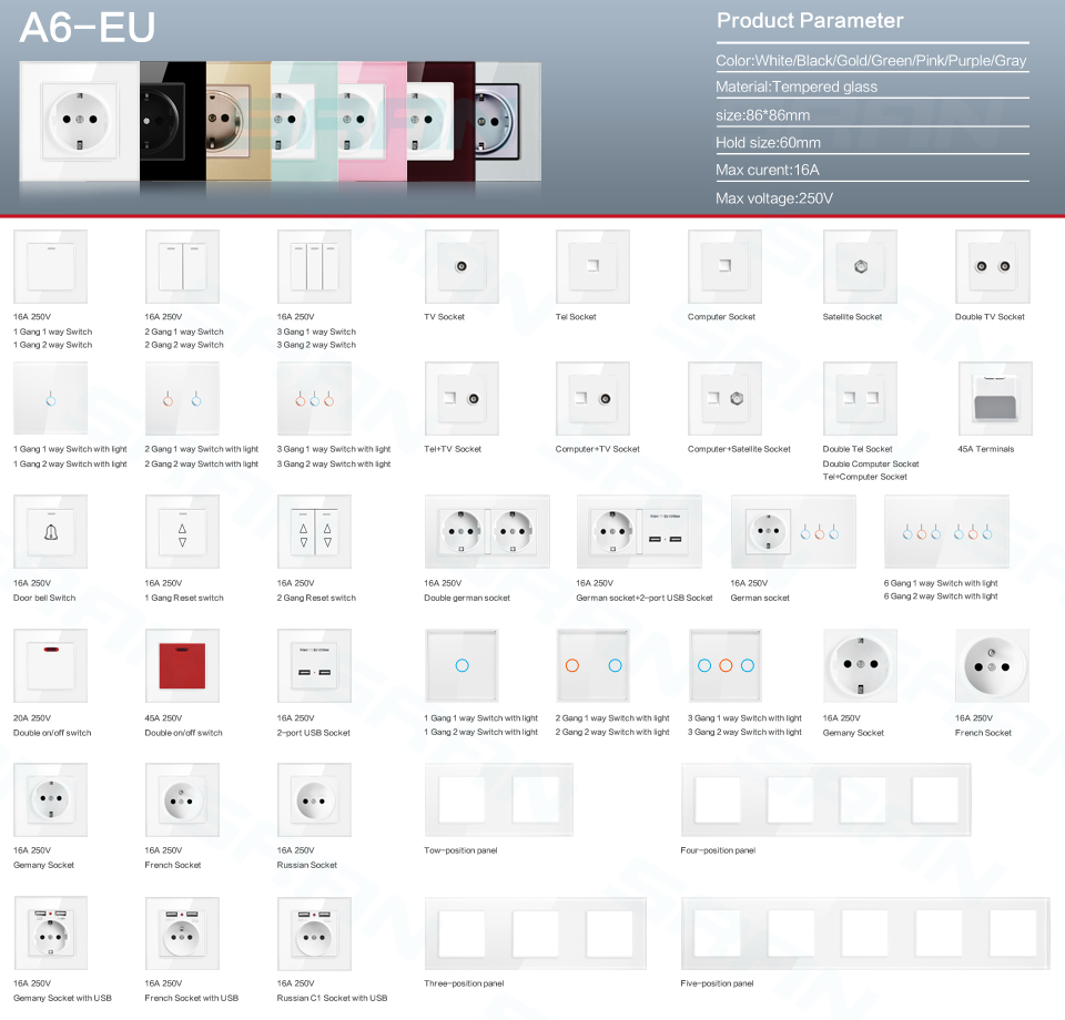 A6 Кристалл Закаленное стекло панели серии