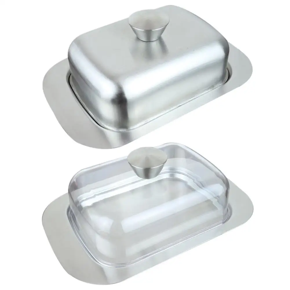Stainless Steel Butter Dish Cheese Bread Storage Butter Tray With See-through Lid Butter Cheese Dish Box Container For Home