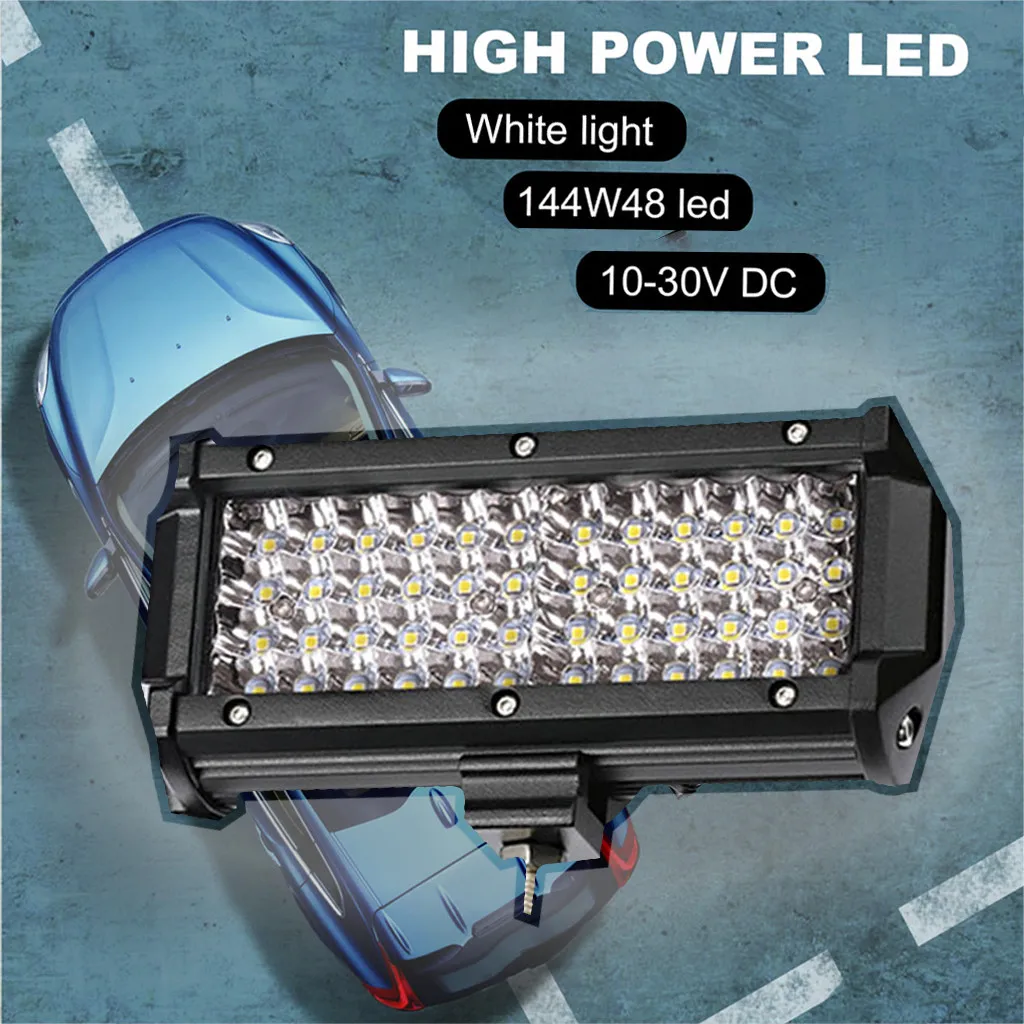Название: 144W48led белый светильник, автомобильный светильник Рабочее напряжение: 10-30 В постоянного тока Водонепроницаемость: IP 67 Цветовая температура: 6000K (чистый белый) Материал: литой под давлением алюминиевый корпус Материал линз: поликарбонат Точечный луч: 30 градусов; Луч потока: 130-150 градусовМонтажный кронштейн: алюминий