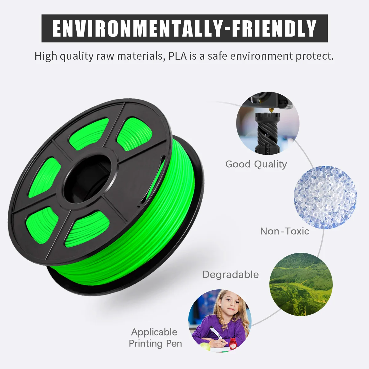 Нить PLA является экологически чистой, низкой усадкой, высокопрочным материалом. Он совместим со всеми типами 3d принтеров FDM, подходит для печати artworksand crafts. 100% без пузырьковой 3d нити принтера.