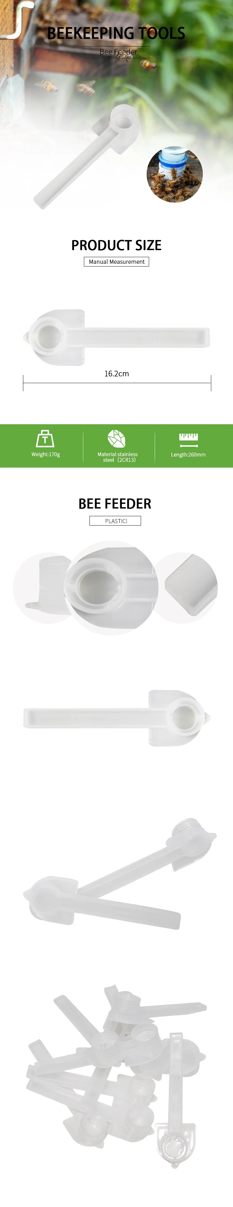 Особенности: Этот тип питателя специально разработан для кормления пчел водой. Их удобно пить с профессиональным дизайном. Отличный питатель для пчеловодства. Легко моется, прочный, высокая интенсивность. Спецификация: Материал: пластик Тип: инструмент для пчеловодства Цвет: белый Размер: один размер 15,5x8 см Калибр: 3 см (1,18 дюйма) Количество: 10 шт. Посылка включает в себя: 10 x фидер Примечание: 1. Допускается погрешность в 1-3 см из-за ручного измерения. Пожалуйста, убедитесь, что вы не возражаете, прежде чем сделать ставку. 2. В связи с разной конфигурацией разных мониторов изображение не отображает фактический цвет товара. Спасибо!