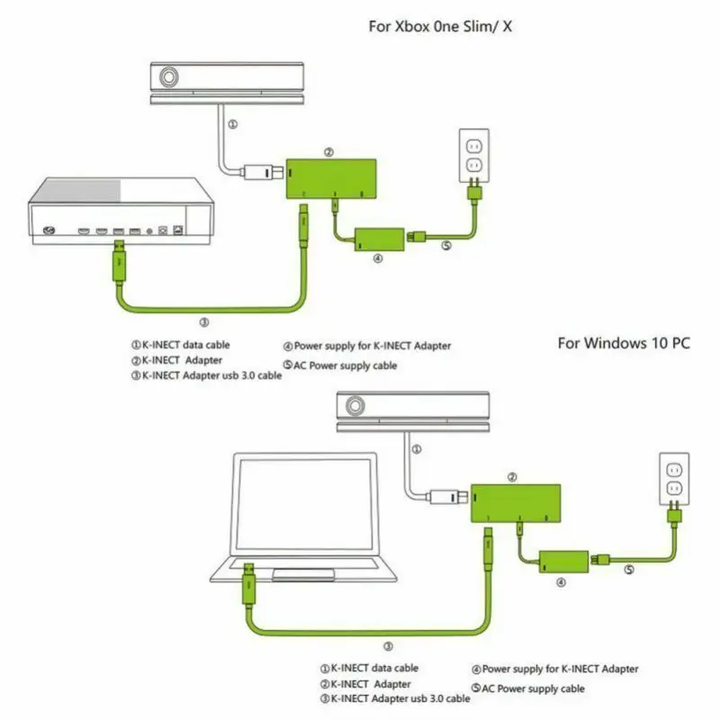 Этот адаптер поставляется с один штекер питания, работающий от сети переменного тока, Кинект USB HDMI DVI Переходник HDMI DVI и на адаптер фирменный разъем USB. Это может использоваться для того, чтобы настроить игровой Кинект-на XBOX One S, XBOX One X, и на ПК.