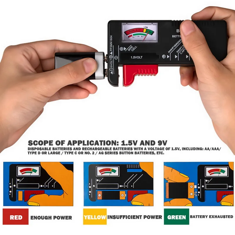 <Широкое применение: работает со всеми 1,5 v батареи, AA, AAA, C, D, Кнопка ячейки, и 9В батареи
