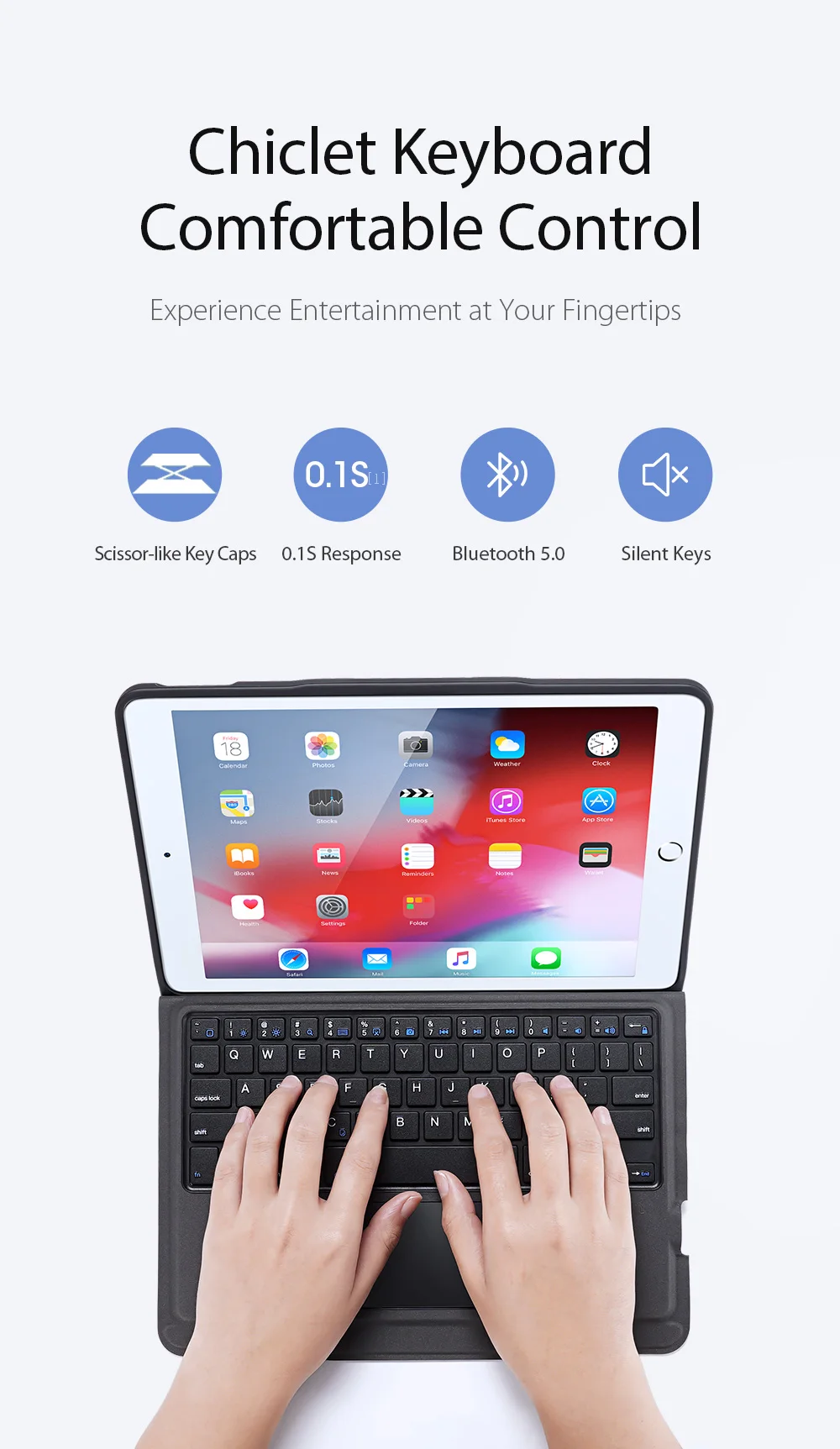 Применимые модели: Для Apple iPad 2017 Pro 10,5 (A1701 A1709 A1852) Для Apple iPad 2019 Air 3 (A2123 A2152 A2153 A2154) Для Apple iPad 2019 10,2 7-го поколения (A2197 A2198 A2200) Для Apple iPad 2020 10,2 8-го поколения (A2270/A2428/A2429/A2430) Примечание: Клавиатура-клавиатура с английскими буквами, но вы можете ввести все другие языки, которые хотите, после настройки на вашем iPad других языков и клавиатуры. Этот продукт не содержит iPad и Apple Pencil