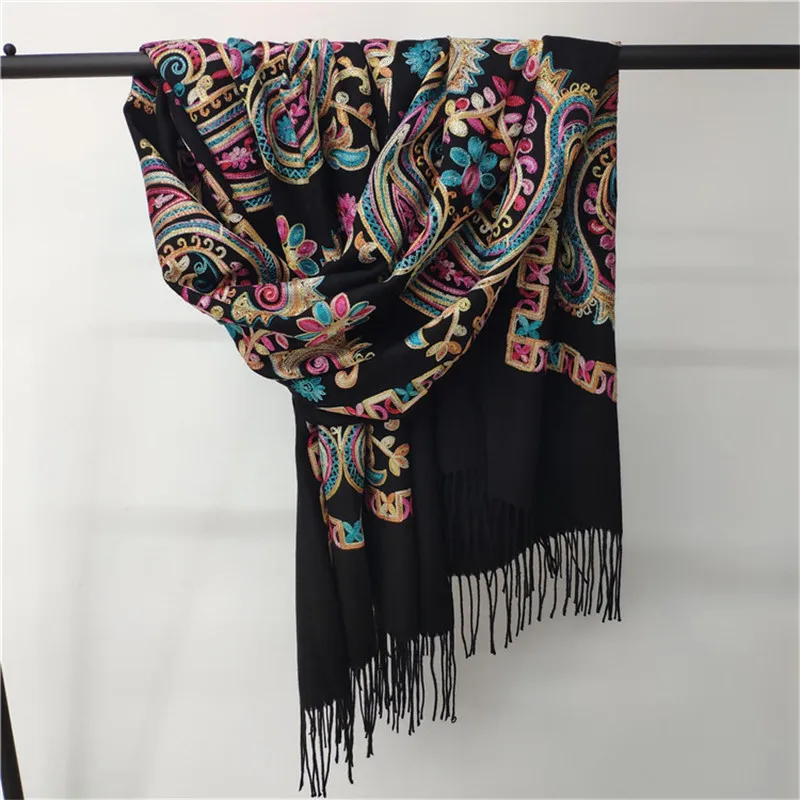Женский зимний кашемировый шарф в богемном стиле, шарфы с национальным принтом, роскошное женское утепленное одеяло, шали с кисточками