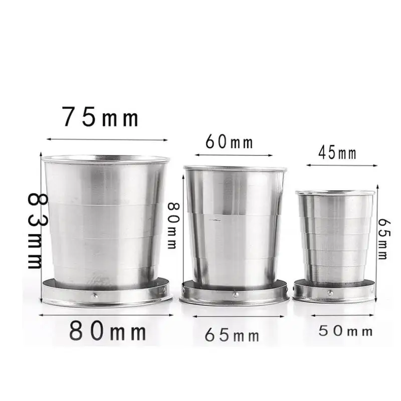 Эта стальная Складная чашка объемом 75 мл, 150 мл, 250 мл достаточно, чтобы пить несколько напитков, чтобы устранить жажду большинства людей