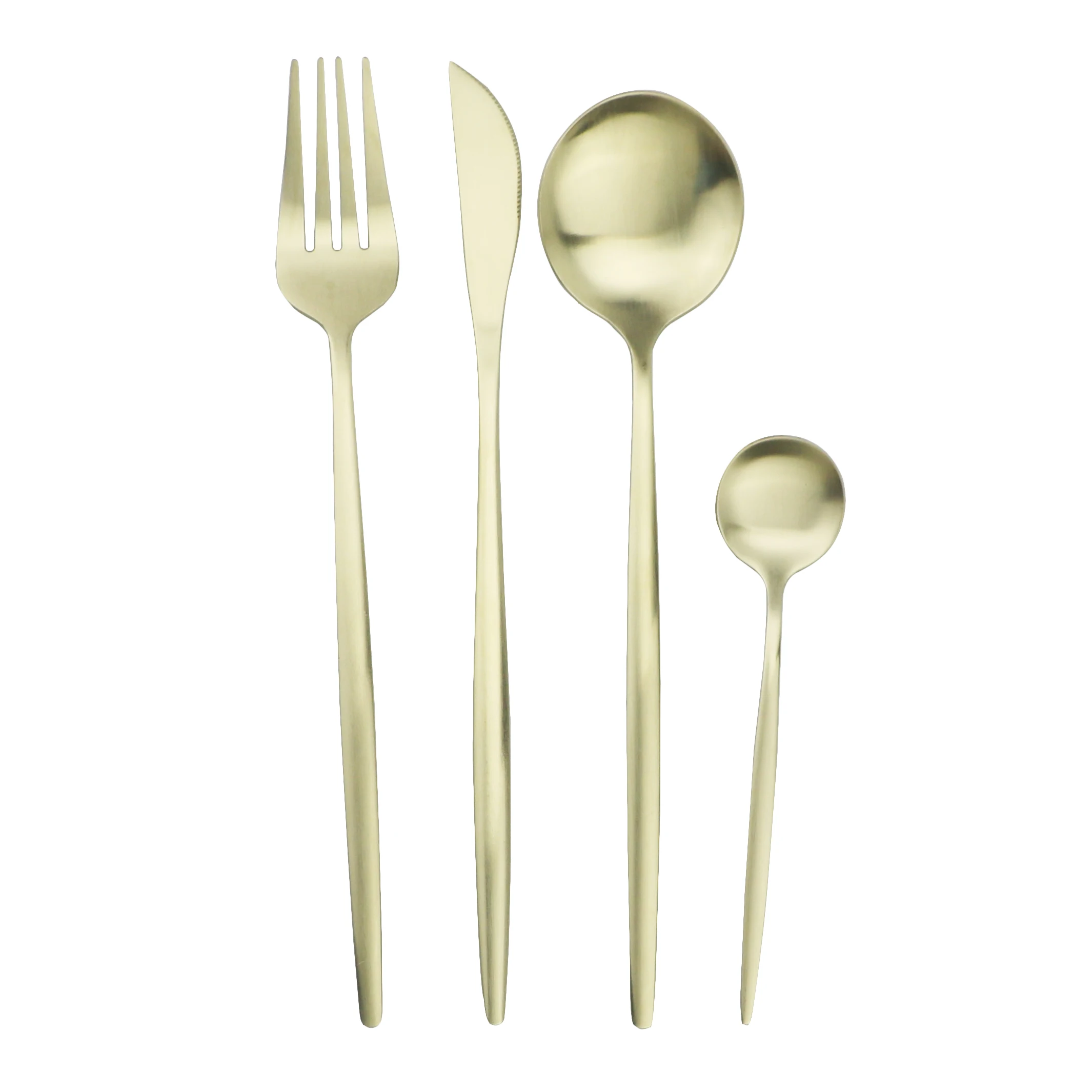 Всего 24 штуки в комплекте, в комплект входят 6 ножей для ужина, 6 ложек для ужина, 6 вилок для ужина, 6 чайных ложек.