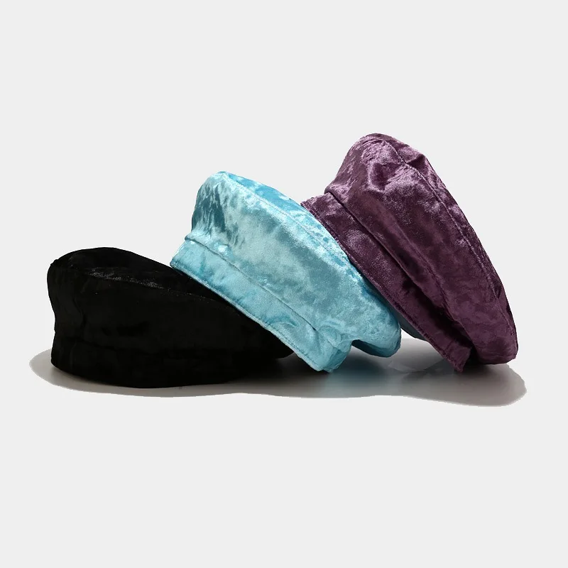 Женский Зимний берет, золотой бархатный однотонный Повседневный темно-синий берет, модная теплая шапка в стиле ретро