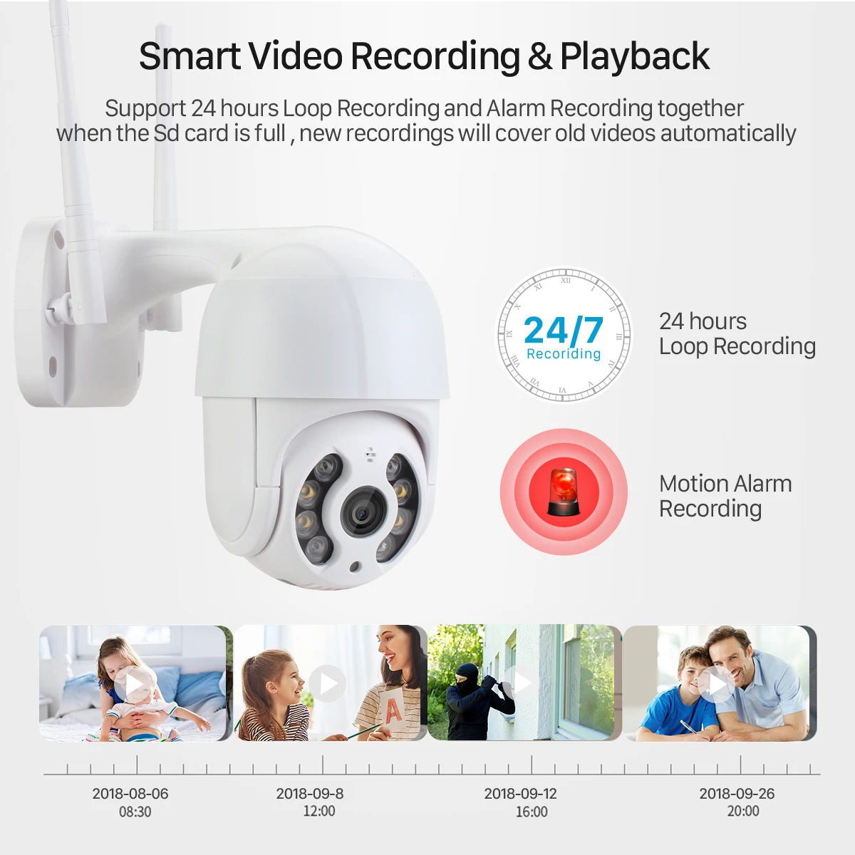 Поддержка записи сигнала тревоги движения, вы можете просто записывать, когда обнаруживает движение, чтобы сохранить больше памяти для вашей sd-карты и облачного хранилища.