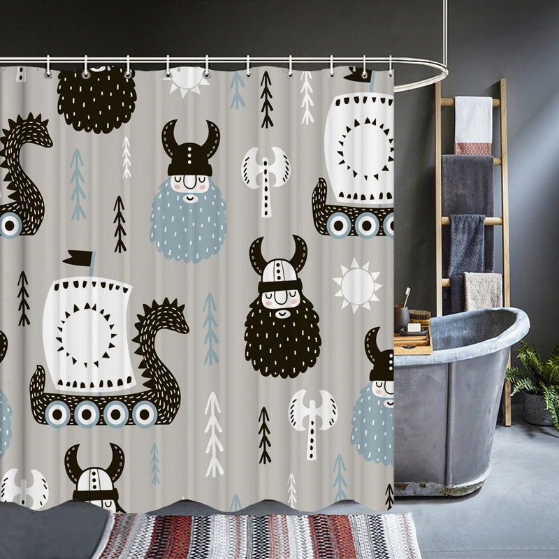 Занавески для ванной комнаты с мультяшными рыбками и крючками