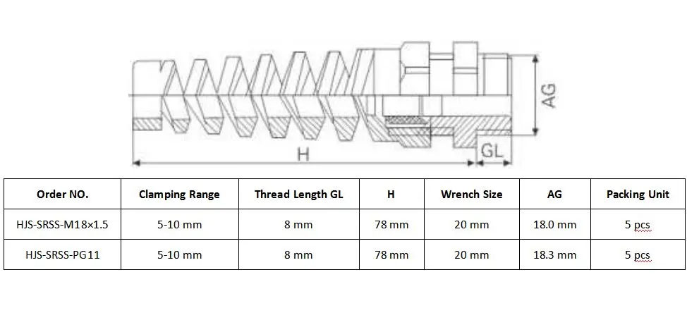 5 шт. кабельный сальник из нержавеющей стали с защитой от изгиба M18 × 1,5, PG11