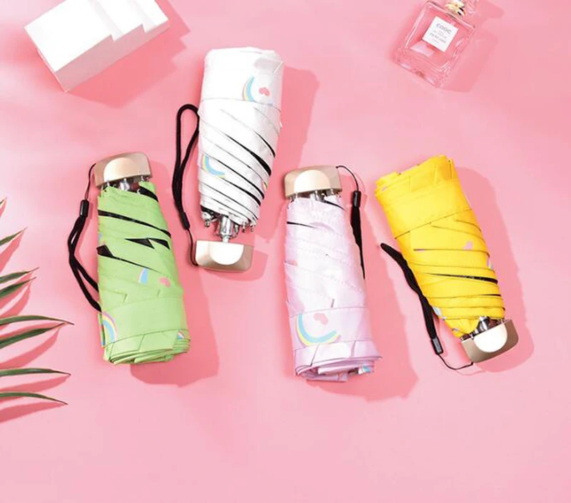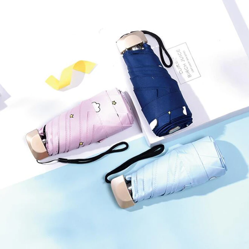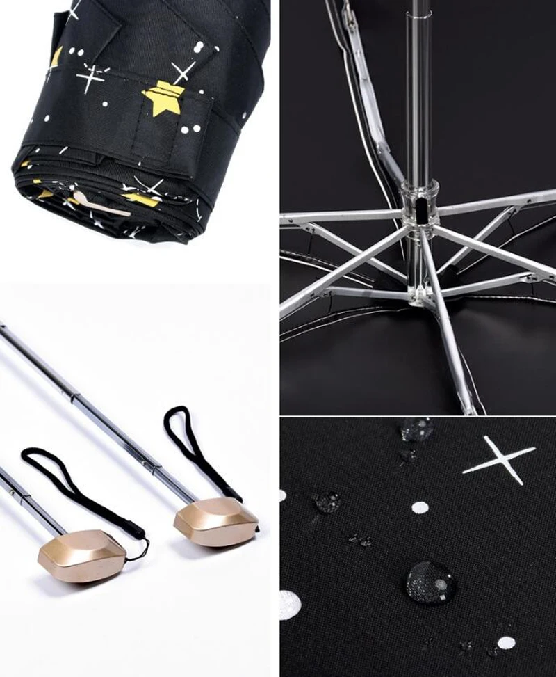 Креативный мини карманный зонтик, 5 сложенных солнцезащитных зонтов для женщин, Звездный светильник, весовой зонт, легко хранить Карманный анти-УФ зонтик