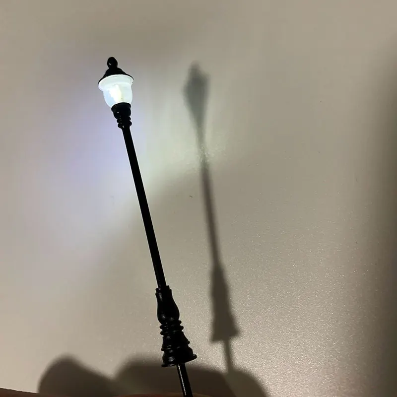 Это верные репродукции дорожного, промышленного и коммерческого наружного освещения, где бы вы ни находились, от городских центров до магазинов одинокой страны. Упаковка из 2 ламп Миниатюрная модель платформы фонаря, лампы высотой 85 мм, и ножка лампы может быть отрегулирована на любую высоту свободно. Освещается низкой мощностью, Долговечные светодиоды SMD 3 вольт;