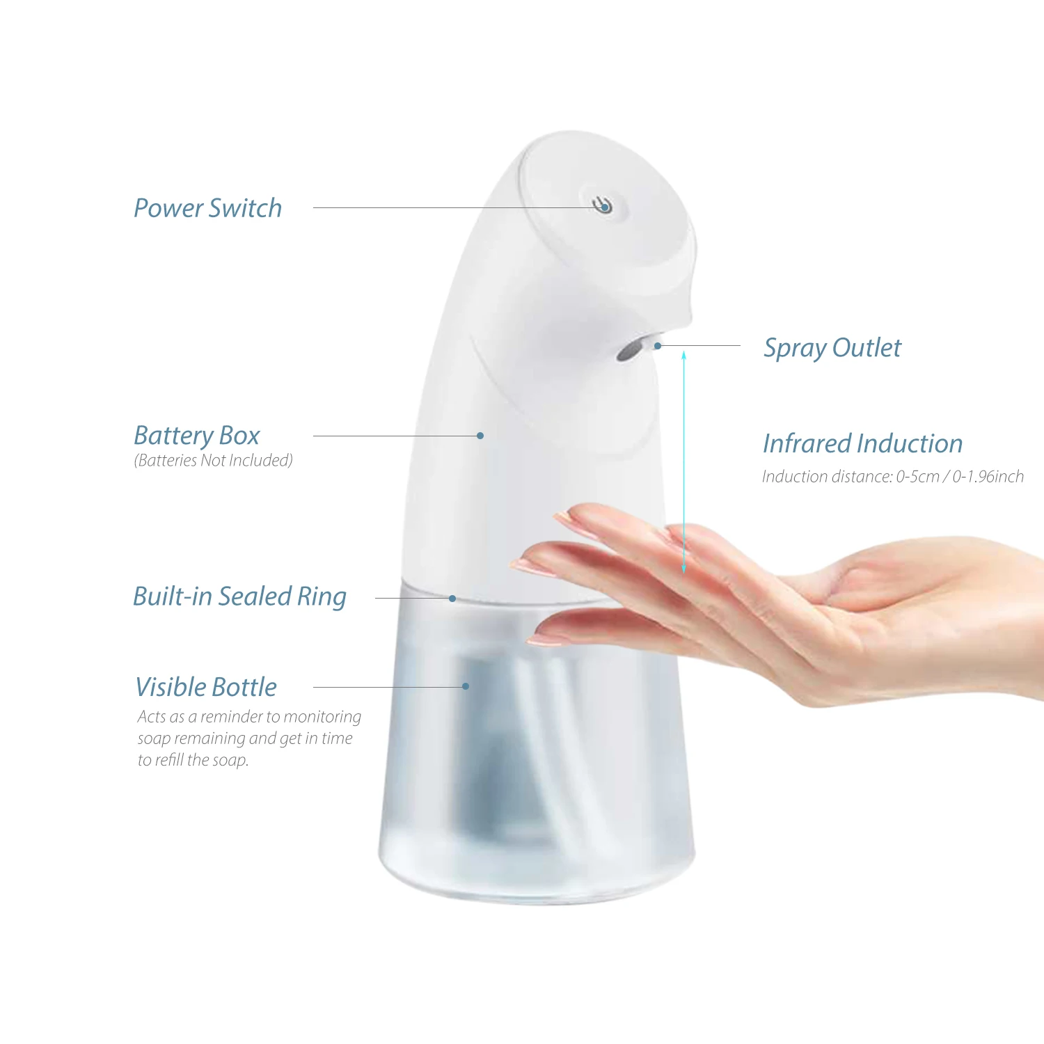 Автоматический дозатор мыла с инновационным дизайном распыления, без касания, идеально подходит для дома, гостиниц, офисов или других общественных мест. Автоматический дозатор мыла с умный ИК-датчик обеспечивает вам санитарный, Бесконтактный и простой в использовании опыт.