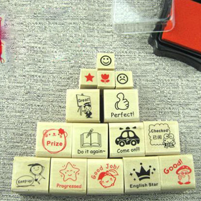 Марки, товары для дома и офиса, для учителя, Stampers, самонаполняющийся мультфильм, 15 шт., английская версия, хвалю, награда, школьные канцелярские принадлежности