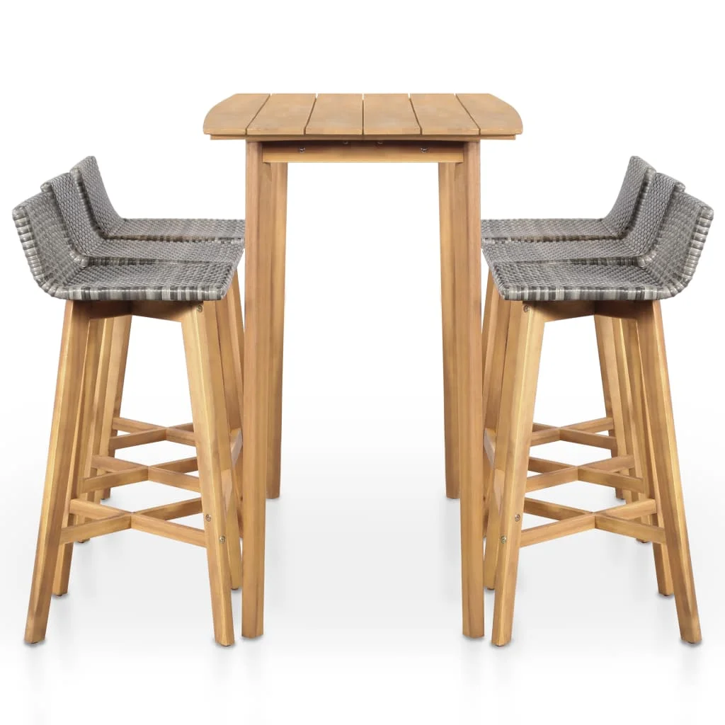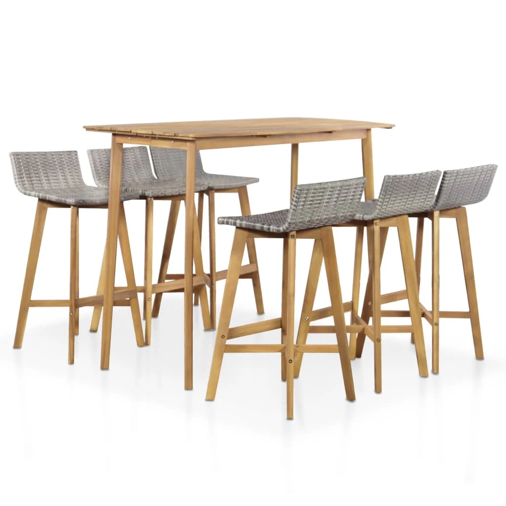 Наш набор баров станет центром вашей внутренней и наружной жилой площади. Комплект изготовлен из твердой древесины акации и очень прочный, прочный и долговечный. Стойкая к атмосферным воздействиям плетеная Смола на сиденье и спинку стула придает набору элегантный дизайн. Деревянная рама придает всему деревенский стиль. Набор легко собирается. Доставка включает 1 барный стол и 6 барных стульев. Примечание: мы рекомендуем покрыть Набор во время дождя, снега и мороза для лучшей долговечности.