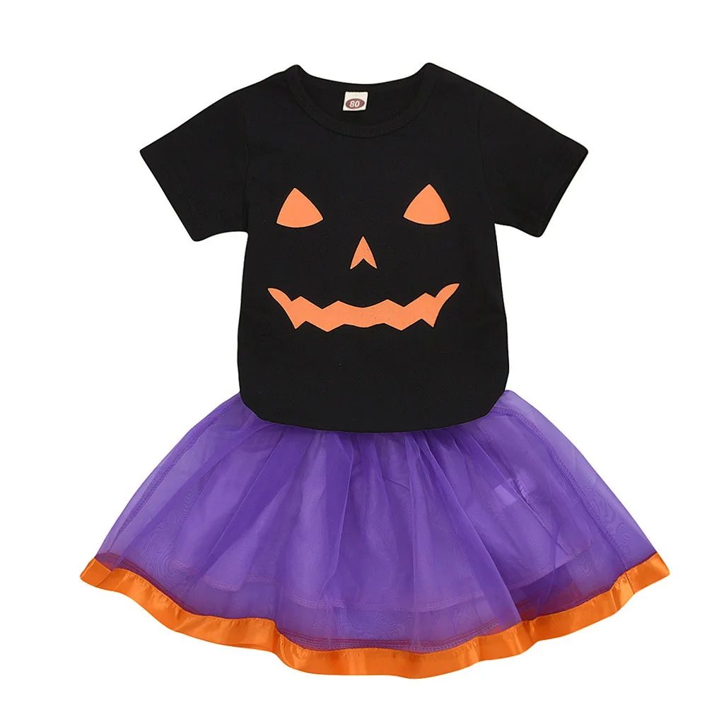 Для новорожденных, детские комбинезоны для малышей, для маленьких девочек, топы с короткими рукавами и принтом на Хэллоуин, юбки, комплект одежды, одежда для новорожденных