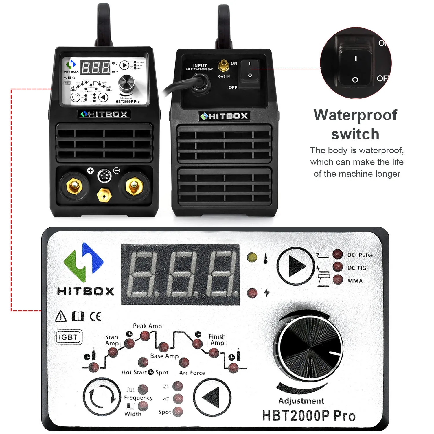 * Многофункциональная сварочная аппаратура TIG/ARC HITBOX, 10-200A настоящий ток, режим tig с импульсной функцией для лучшего контроля диапазона тока, чтобы избежать проникновения от сварки.