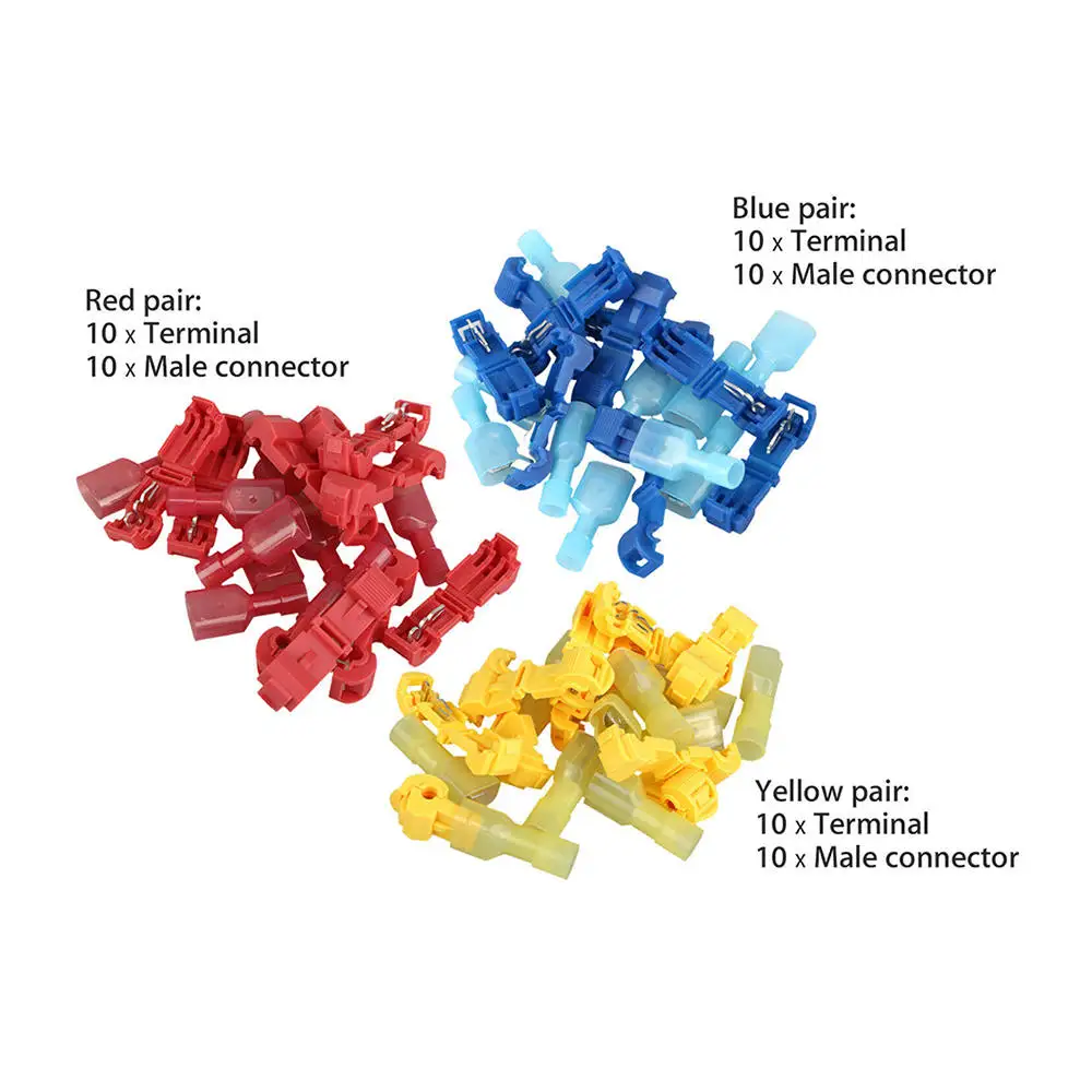 30 пар (60 шт.) быстрозажимные клеммы, 3 цвета (красный/синий/желтый), каждый цвет 10 пар