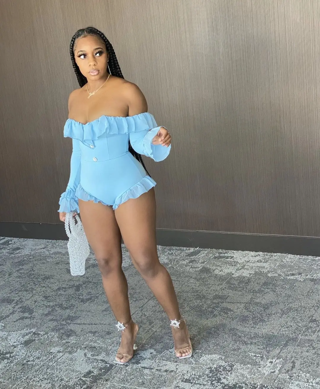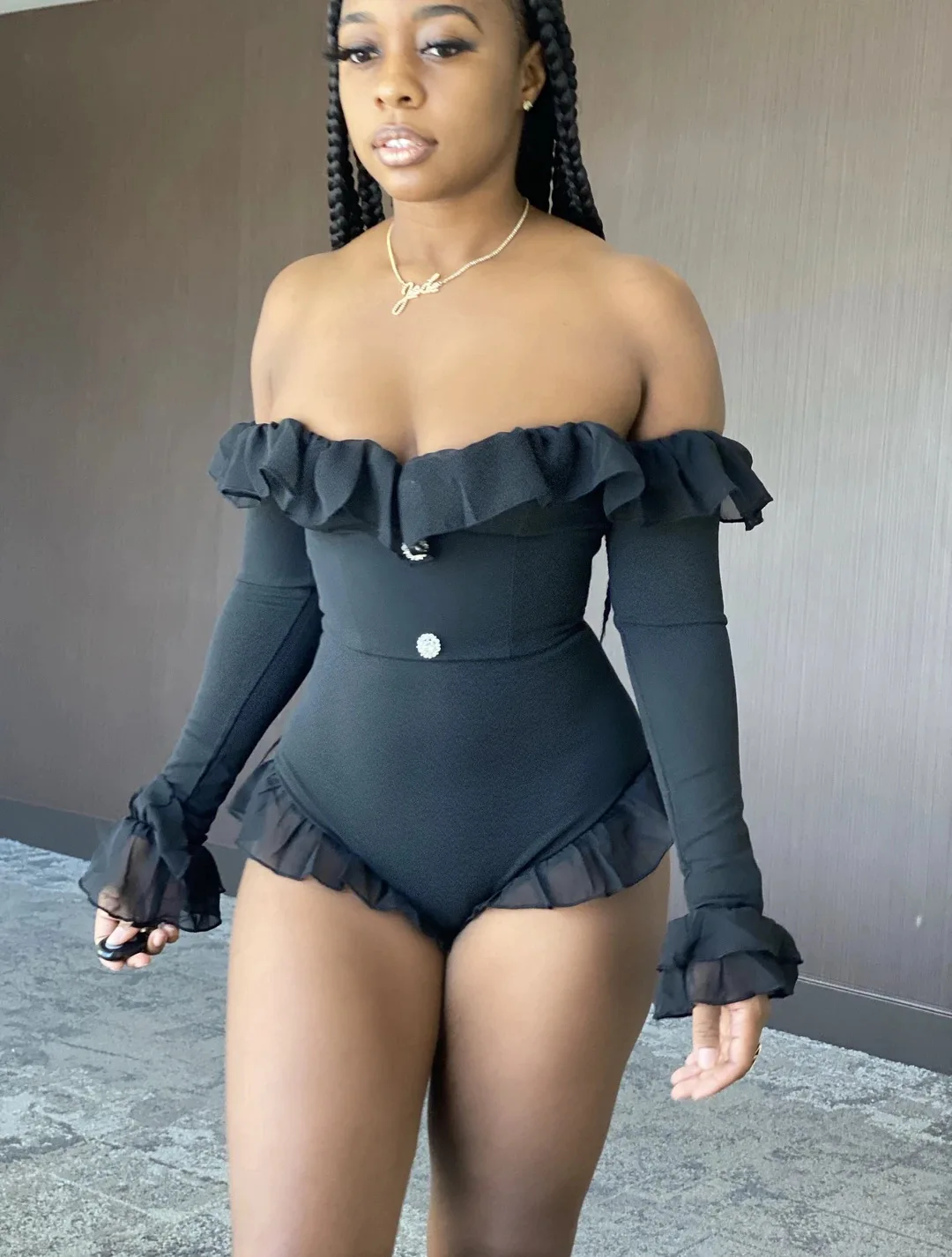 Adogirl сексуальная сплошной оборкой комбинезон с вырезом-лодочкой Для женщин праздничные платья с длинными рукавами футболка и шорты купальник новый плетением в стиле пэчворк одежда для Для женщин