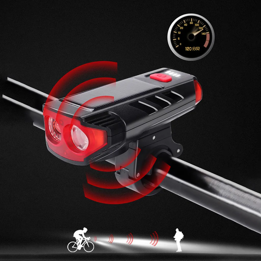 Светодиодный светильник на солнечной батарее с зарядкой от USB для велосипеда, светильник на голову для велосипеда