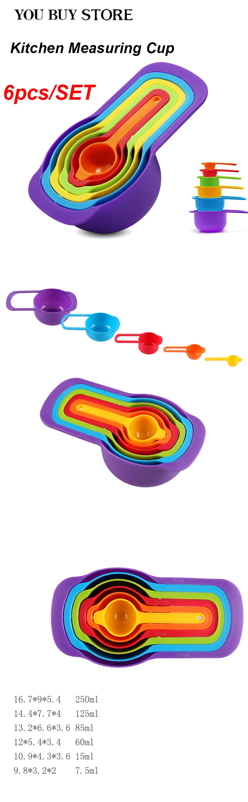 Особенности:Абсолютно новый высококачественныйОчень подходит для измерения ложек, чтобы обеспечить точное измерение точности жареного кофе и точности приготовленияМожет измерять различные характеристики материаловУдобная ручка, отборные материалы, безопасные и здоровыеХарактеристики:Материал: пластик (пищевой)Объем чашки: 7,5 мл/15 мл/60 мл/85 мл/125 мл/250 млЦвет как показаноРазмер: как показаноПосылка включает в себя:1 х Набор мерной ложки
