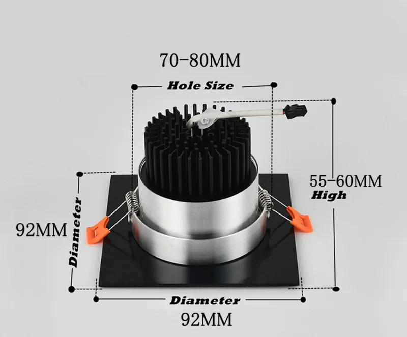 Вход Напряжение: AC85-265V/110V/220V 50/60Hz Мощность: 5 Вт/7 Вт/9 Вт/12 Вт Регулировка яркости: Да Индекс цветопередачи (CRI):>Ra85 Угол луча: 30 ° Светодиодный чип: C0B чип (Epistar) Световой поток: 95 ~ 110 лм/Вт Температура: от-25 до 45 ° Уровень защиты: IP52 Цветовая температура: теплый белый:(2700K-3000K); Натуральный белый:(4000K-4200K); Холодный белый:(6000K-6500K) Срок службы: 50000 ~ 80000 часов Одобрено: CE/RoHS/FCC/3C Гарантия: 3 года Материал: литье под давлением алюминий + линзы Происхождение: Гуандун (Китай)