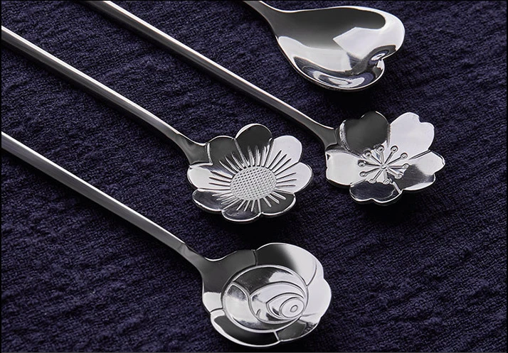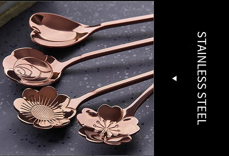 Посуда, ложка для перемешивания кофе, длинная ручка, совок для цветов, нержавеющая сталь, позолота, вишня, роза, ложки, наборы, кухонные инструменты