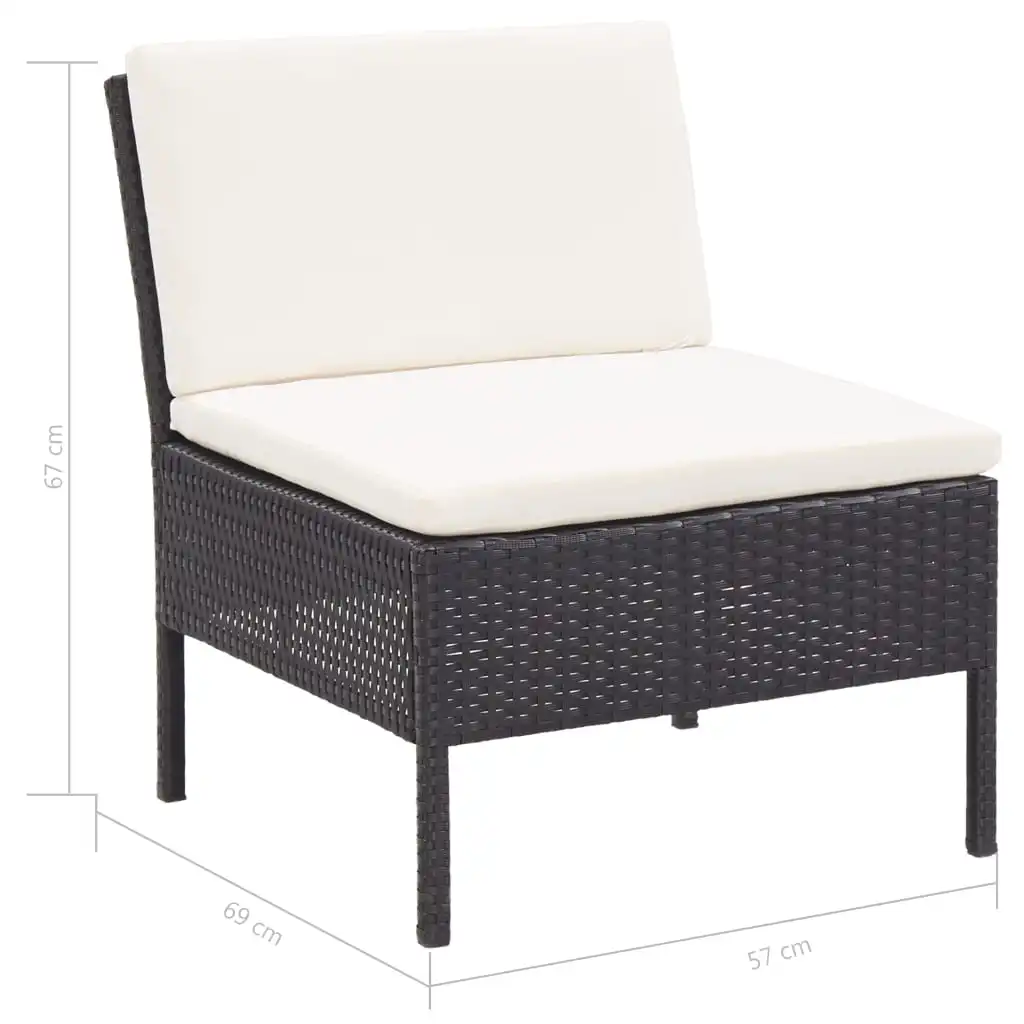 Коричневый цвет/черный цвет Цвет подушек: кремово-белый Материал: тканая смола (полиэтилен), стальная рама с порошковым покрытием Материал подушки: 100% полиэстер с хлопковым наполнителем Размеры журнального столика: 60x60x35 см (Д x Ш x В) Размеры углового дивана: 69x69x67 см (Ш x Г x В) Ширина сиденья: 57 см Глубина сиденья: 57 см Высота сиденья: 35 см Размеры центрального дивана: 57x69x67 см (Ш x Г x В) Ширина сиденья: 57 см Глубина сиденья: 57 см Высота сиденья: 35 см Размеры подставки для ног: 60x60x35 см (Д x Ш x В) Требуется сборка В комплект поставки входит: 3 х угловой диван 3 x центральный диван 1 x журнальный столик 1 x подставка для ног Задняя подушка-9 шт. 7 x подушка сиденья