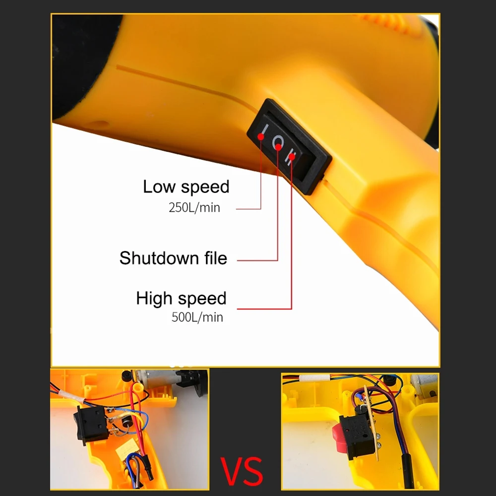 Мощный и эффективный Медный двигатель может нагревать воздух до 630 ℃ с переменной скоростью потока воздуха 250 л/мин или 500 л/мин.