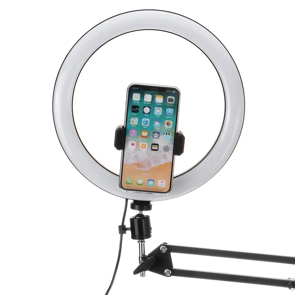 Mobile Phone Tablet Holder Stand For iPad Phone 360 Degree Long Arm Lazy Bed Desk Tablet Mount Support With LED Ring Light