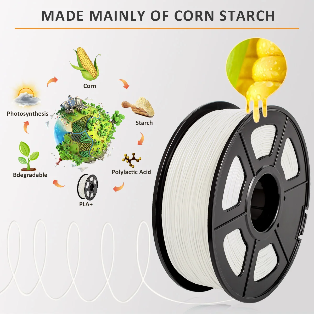 PLA plus нить Экологически чистая, низкая усадка, высокая прочность, отличная прочность материала. Печать продукта Стабильная производительность.