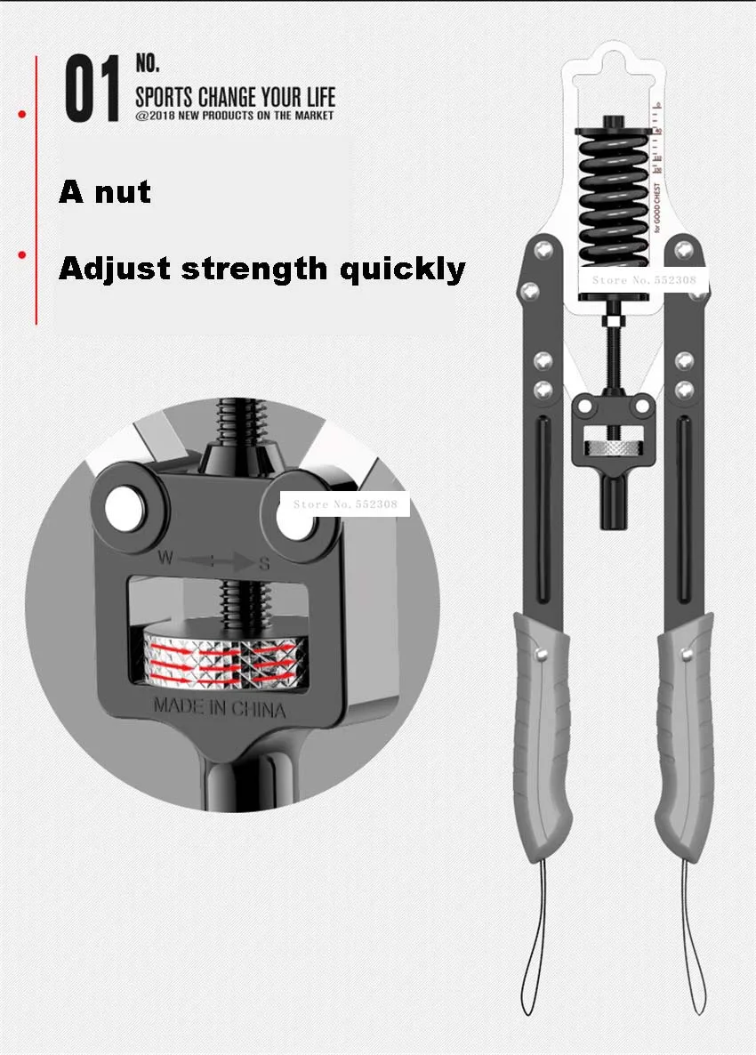 Название продукта: Сила Руки Номер модели: TH1 Материал: утолщенная пластина из углеродистой стали, инженерный пластик из ПВХ, высокопрочная пружина из углеродистой стали Регулируемый диапазон: 30 кг-75 кг Цвет: черный/красный Назначение: силовые тренировки, такие как домашнее фитнес-оборудование иОсновной тренажер для мышц груди и рук Пакет 1 * прочность рукиПоказ изображения