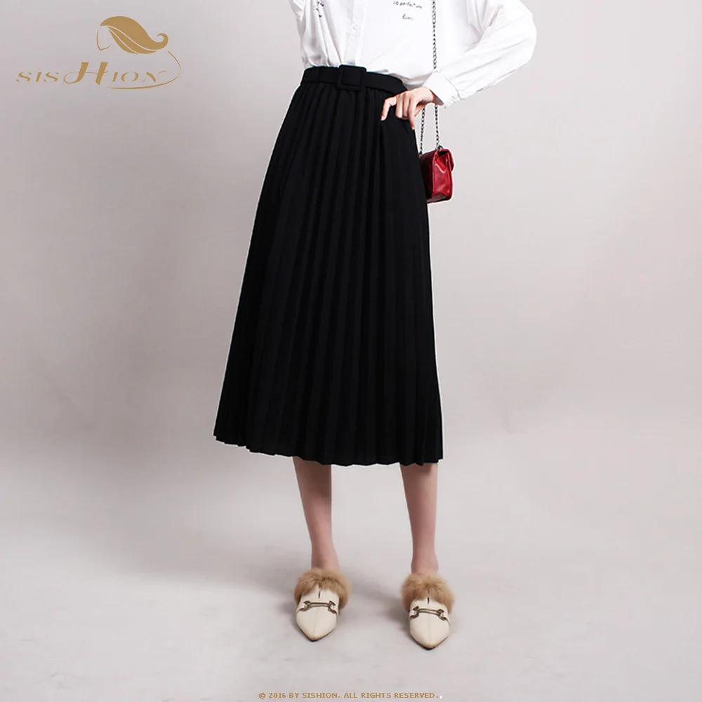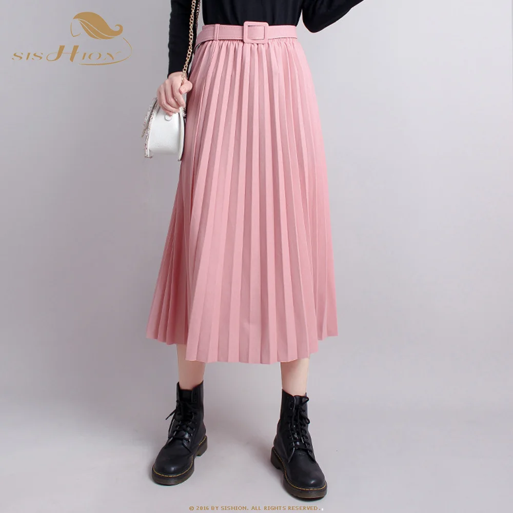 2020 Новое поступление Осенняя юбка WF0164 модная черная розовая Женская длинная миди юбка размера плюс элегантная плиссированная юбка